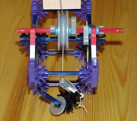 One system uses a wood ramp and a Hot Wheel® car taped to a string that goes up the ramp around a pulley and connects to a mass on a weight hanger. Supports and hanger are constructed with K'Nex.