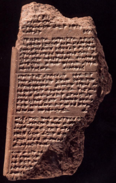 Stone is scarce so they use clay tablets and a stylus to create pictograms and ideograms. Such as: an open hand = peace, closed hand = war, crown, dish... Later started to use phonograms, which will also be used in European alphabets and Chinese characters. However, there lacks clear evidence of any links from Mesopotamia to Egyptian hieroglyphs, Chinese characters, and Mesoamerican scripts. Writing is a product of civilization, but it is not a necessary product of civilization. Writing seems to evolve in a social group context (religious, political …) starting with symbols, which gradually became associated with sounds. Also created is hieroglyphics, which are sacred writings that are carved, painted, and later brushed on papyrus. Among the Sumerians tablets is what might be the oldest recorded story? An English version of the Epic of Gilgamesh and the Humbaba, and an image of a statue of Gilgamesh, in the Louvre Museum.