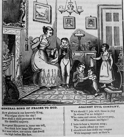 | 1715 | Devine Songs, Attempted in Easie Language for the Use of Children, by Isacc Watts (1674-1748). Moral Songs in lessons and verse were added later. Like about busy bees and quarrelsome dogs, wrote tender and beautiful hymns which didn't dwell on fearful God, but God as our refuge. Like: