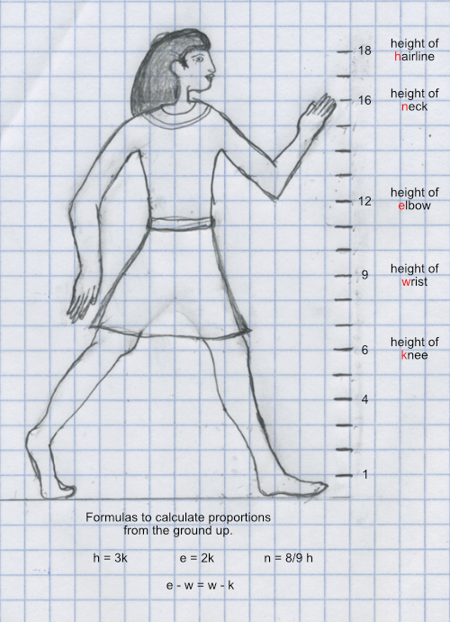 Early Egyptians sorta discovered the idea of body parts being proportional and used it in their art. For example, to draw people they could used proportions and a grid to draw people. Explore the grid example, from an ancient artifact and see how it compares to modern humans.