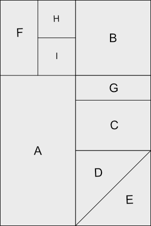 The Pharaoh draws a rectangle in a clay tablet and decrees nine houses (A - I) shall grow grain, in their assigned areas. Where upoon, the grain shall be collected and stored in the Pharaoh's grain houses for the use of the dynasty.
