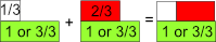 | Addition of fractions | Create fractions with identical rods as the denomenator or value of one, then join the rods representing the numerator.