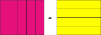 | Multiplication | Repeated addition, squares and rectangles, towers Four groups of five; 4 × 5 = 20