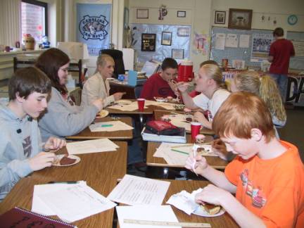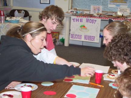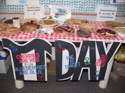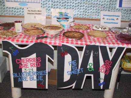 Algebra 1 students measured circular objects to discover that the circumference divided by the diameter is always pi Ð approximately 3.14 Ð which is why we celebrate pi day on March 14th. The students also get to enjoy pie.