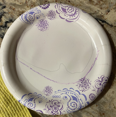 - Plate, five different colors of crayons,