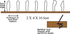 Two sixteen foot 2X4’s with clothes line cord attached every two feet.