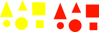 Envelope with 12 shapes: small yellow square ,small yellow circle, small yellow triangle, small red square, small red circle, small red triangle, large yellow square, large yellow circle, large yellow triangle, large red square,large red circle, and large red triangle.